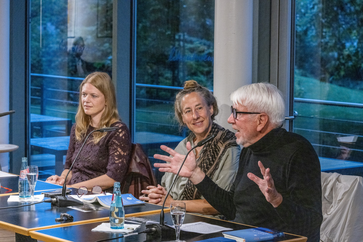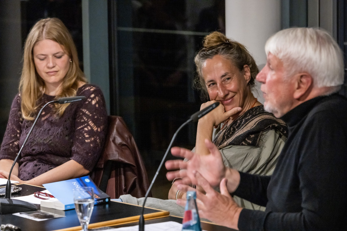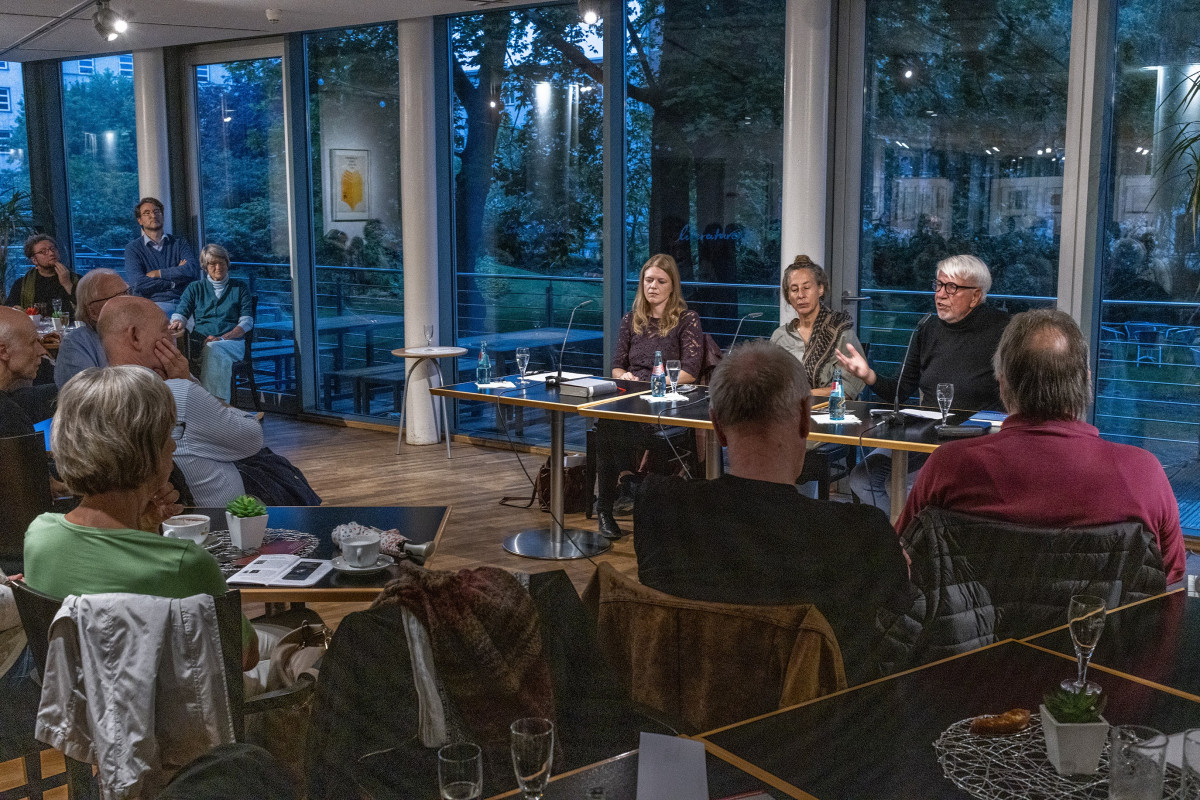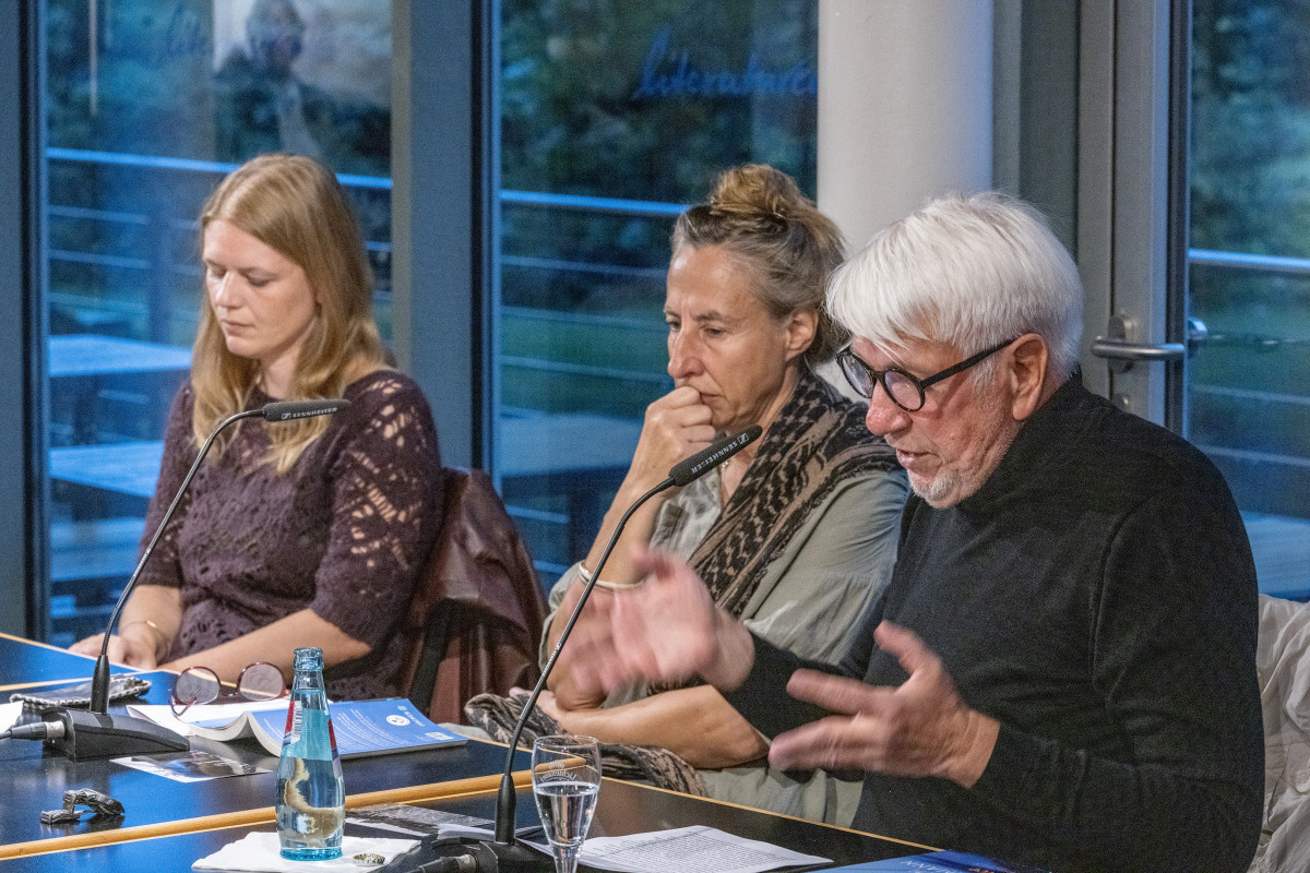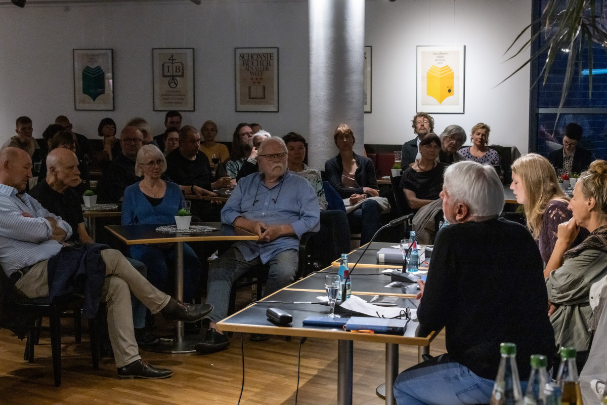 Am 14. September 2022 ging das Doppeljubiläumsjahr für Wolfgang Hilbig zuende. Zum großen Finale im Literaturhaus Leipzig stellten die Malerin Katja Enders-Plate und die Schriftstellerinnen Judith Hermann und Marit Heuß von Hilbig inspirierte Werke vor: Gemälde, Druckgrafik, Erzählung, Gedicht. Literatur- und Kunstkritiker Michael Hametner führte durch den Abend, Jubiläumsfotograf gezett, zwei Jahre an der Seite der Veranstaltungsmacher, betätigte letztmalig den Auslöser: